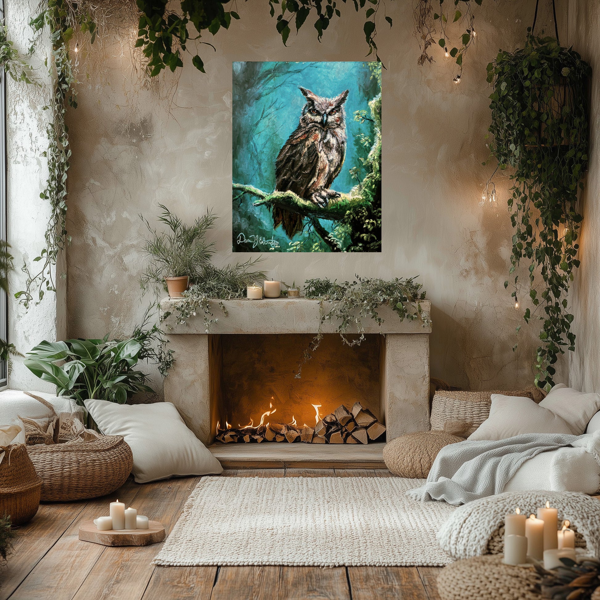 Perched high on a mossy branch, this weathered owl glares with the wisdom and weariness of ages. Ornery Old Owl captures the character and spirit of the wild — sharp-eyed, proud, and just a little bit grumpy.